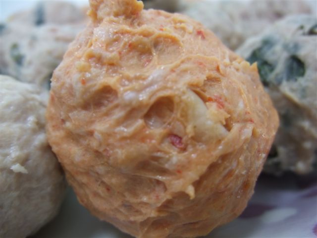 泡菜貢丸 顏色深了點 其實不會很辣 而且可以吃到泡菜 一整個很酷