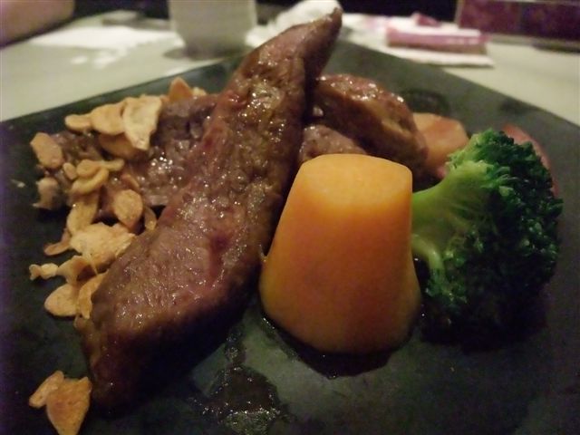 這盤吸引我的是他的 炸到香酥的蒜頭 可惜 他放在牛肉上面 我不能吃 哈